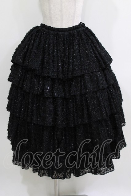 MARBLE / 5段フリルロングボリュームスカート 黒/ラメシャギー H-26-03-22-002-GO-SK-KB-ZH