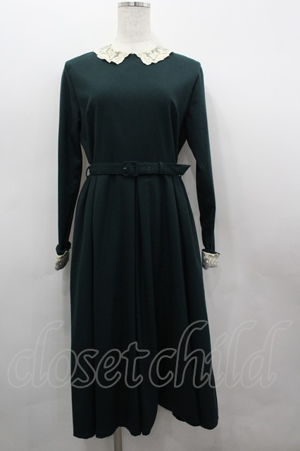 an another angelus / ベルト付きワンピース 緑Xアイボリー I-26-03-19-048-CA-OP-SA-ZI