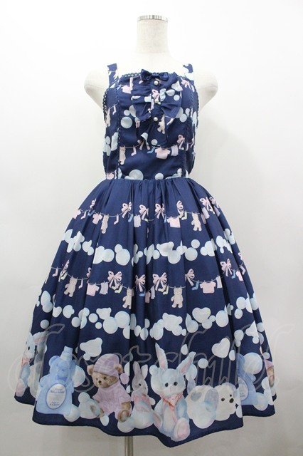 axes femme kawaii / ランドリー柄ジャンスカ ネイビー I-26-03-19-083-AX-OP-SA-ZI