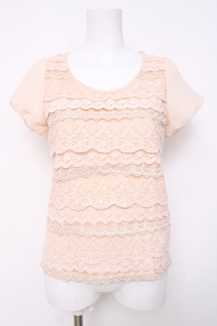 Ank Rouge / スカラップレースカットソー M 淡ピンク Y-26-03-20-055-CA-TO-SZ-ZY