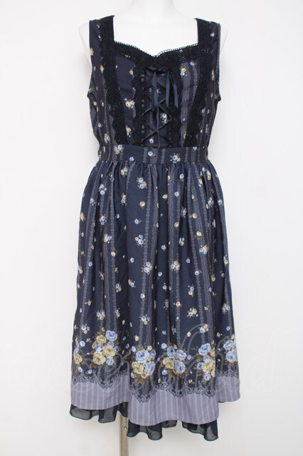 axes femme / ロマンティックプリントワンピース M 紺 Y-26-03-20-091-AX-OP-SZ-ZY