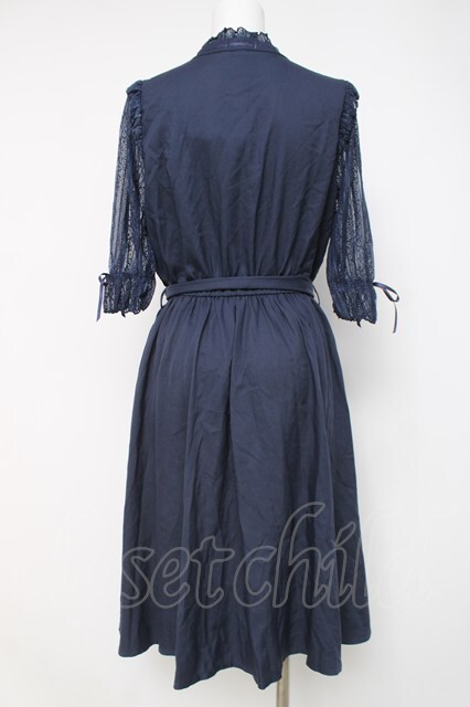 axes femme POETIQUE / 袖レースワンピース M 紺 Y-26-03-20-097-AX-OP-SZ-ZY