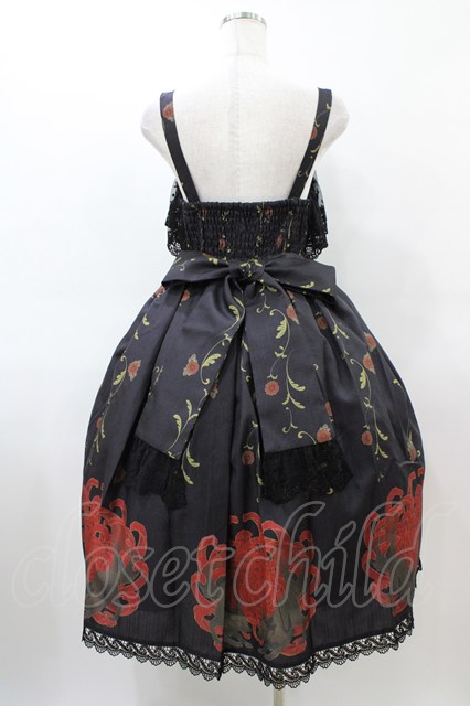 Chalmiere / 菊と狐柄ジャンパースカート M ブラック H-26-03-22-1019-0-OP-NS-ZH [戻る]