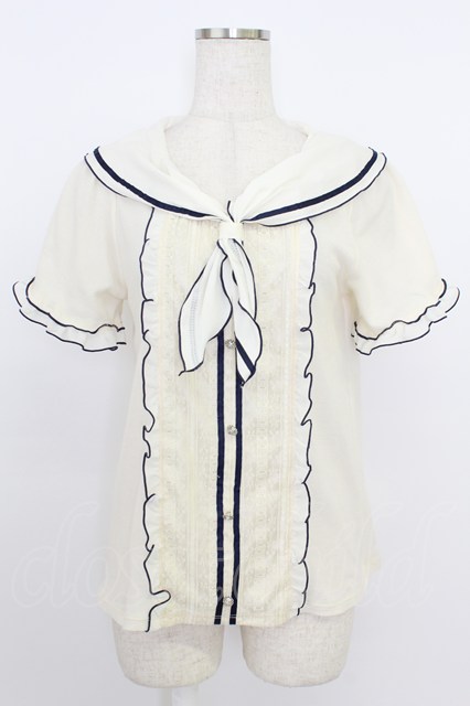 axes femme POETIQUE / セーラー風半袖トップス アイボリーXネイビー T-26-03-24-001-AX-TO-SA-ZT