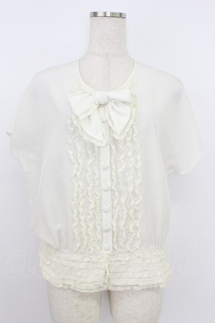 PINK HOUSE / 胸元リボン&裾レース半袖ブラウス アイボリー T-26-03-24-002-LO-BL-SA-ZT [戻る]