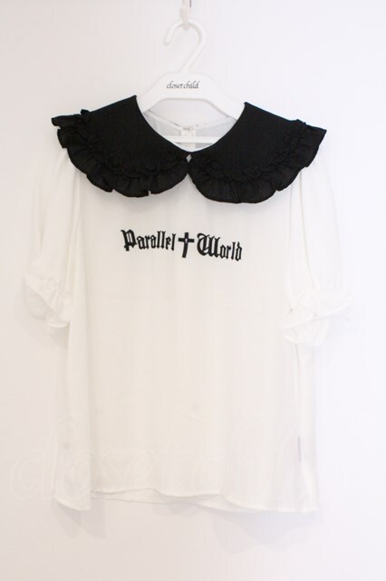 Jamie エーエヌケー / ゴシックロゴブラウス M シロ×クロ O-26-03-21-039-LO-BL-OW-OS