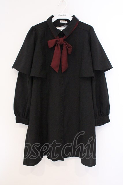 axes femme / ケープデザインワンピース クロ×ワイン O-26-03-21-072-AX-OP-IG-OS