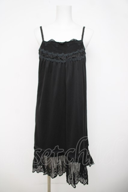 axes femme / 裾刺繍入りプリーツインナーワンピース M 黒 Y-26-03-21-009-AX-OP-SZ-ZY