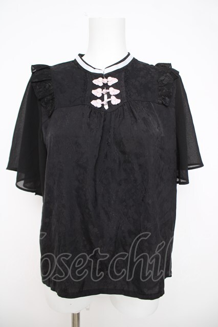 axes femme / ジャカードチャイナブラウス 黒 Y-26-03-21-012-AX-BL-SZ-ZY