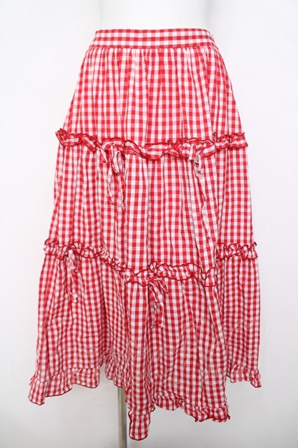 axes femme POETIQUE / ギンガムティアードスカート M 赤 Y-26-03-21-058-AX-SK-SZ-ZY