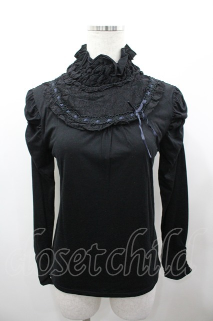 axes femme / はしごレースリボンハイネックカットソー 黒 I-26-03-23-010-AX-TO-SA-ZI