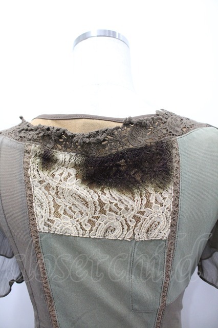 OZZ ANGELO / チュール袖重ねワンピース カーキxブラウン I-26-03-23-060-OO-OP-SA-ZI