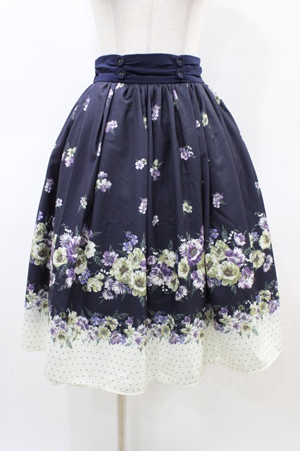 axes femme / 花柄×ドットスカート M ネイビー H-26-03-24-1044-AX-SK-NS-ZH