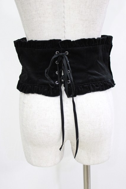 BPN / 別珍ショートコルセットベルト 黒 H-26-03-24-045-GO-ZA-KB-ZH