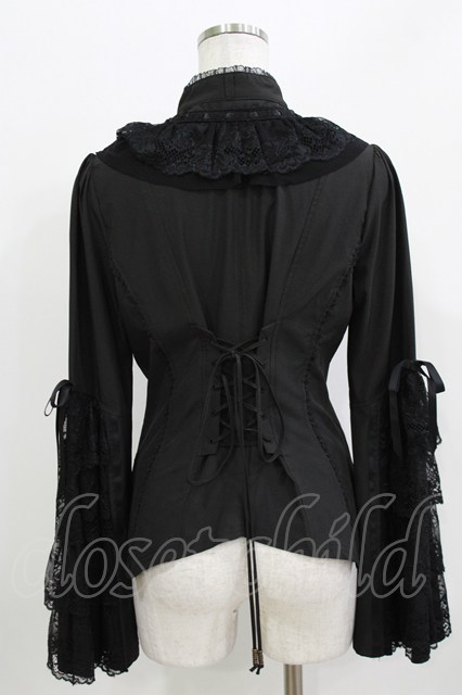 Ozz oneste / レースフリル姫袖ブラウス ブラック H-26-03-24-050-OO-BL-KB-ZH [戻る]