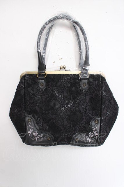 axes femme / がま口レース刺 バッグ 黒 Y-26-03-26-026-AX-BG-SZ-ZY