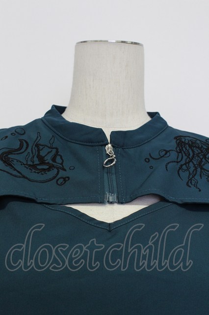 axes femme POETIQUE / ダークマリン肩開き刺繍ブラウス M ブルーグリーン T-26-03-23-011-AX-BL-SA-ZT