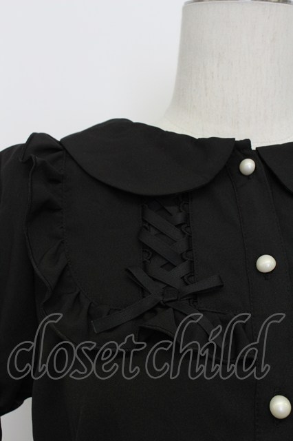 majoretty / サイド編み下げリボン半袖ブラウス 黒 T-26-03-23-013-GO-BL-SA-ZT