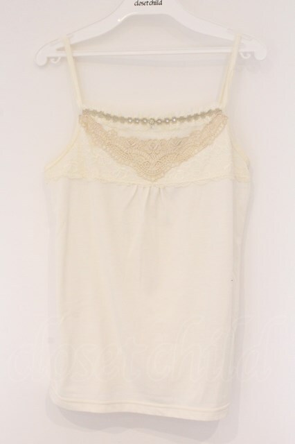 axes femme / レース&ストーン使いキャミ M キナリ O-26-03-23-077-AX-TO-OW-OS