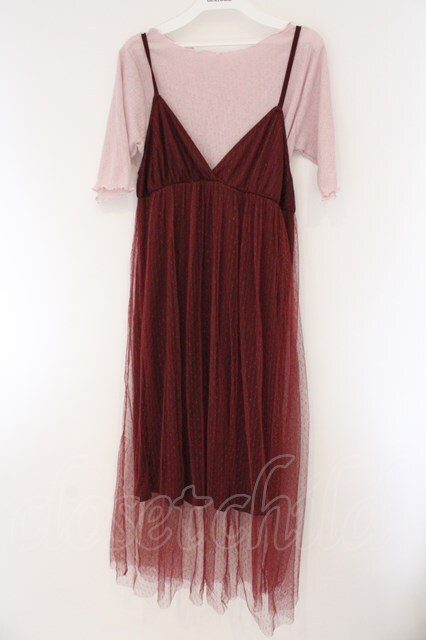 axes femme POETIQUE / インナー付ドットチュールワンピース ワイン×ピンク O-26-03-23-042-AX-OP-IG-OS