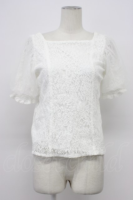 axes femme / チュール袖総レーストップス ホワイト T-26-03-30-021-AX-TO-SA-ZT [戻る]