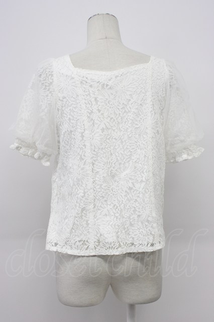 axes femme / チュール袖総レーストップス ホワイト T-26-03-30-021-AX-TO-SA-ZT