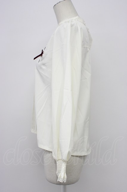 axes femme POETIQUE / パペトゥリーロゴ刺繍ブラウス アイボリーXブラウン T-26-03-30-024-AX-BL-SA-ZH