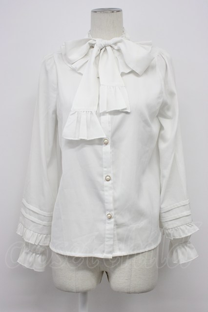 axes femme kawaii / ピンタック袖デザインブラウス 白 T-26-03-30-025-AX-BL-SA-ZT
