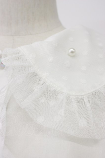 axes femme kawaii / ドットチュール半袖ブラウス 白 T-26-03-30-026-AX-BL-SA-ZT