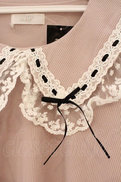 DearMyLove / レースフリル襟上品リブカットソー M ピンク O-26-03-24-081-EL-TO-OW-OS