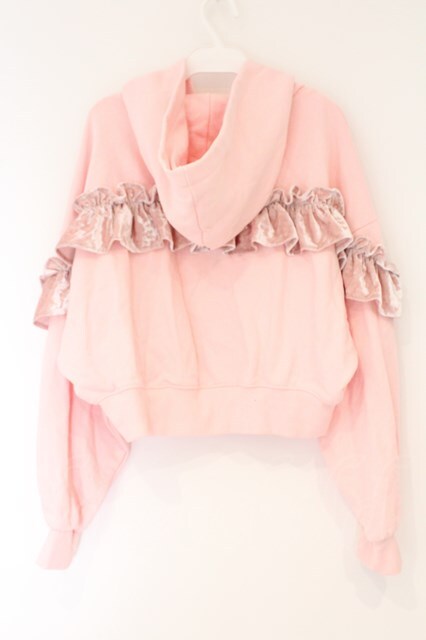 one spo / ベロアフリルパーカー M ピンク O-26-03-24-073-LO-TO-OW-OS