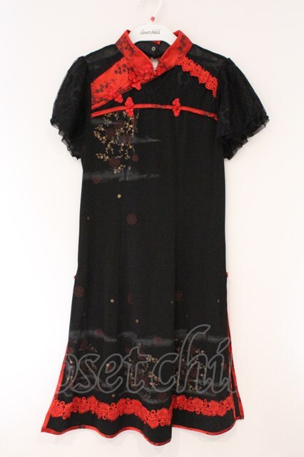 Ozz oneste / チャイナ風スリットワンピース ブラック×レッド O-26-03-24-042-OO-OP-OW-OS [戻る]