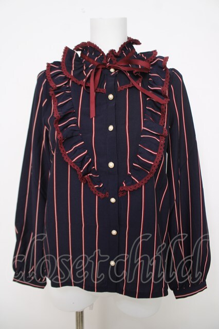 axes femme / ストライプ柄フリルブラウス M 紺 Y-26-03-28-011-AX-BL-SZ-ZY