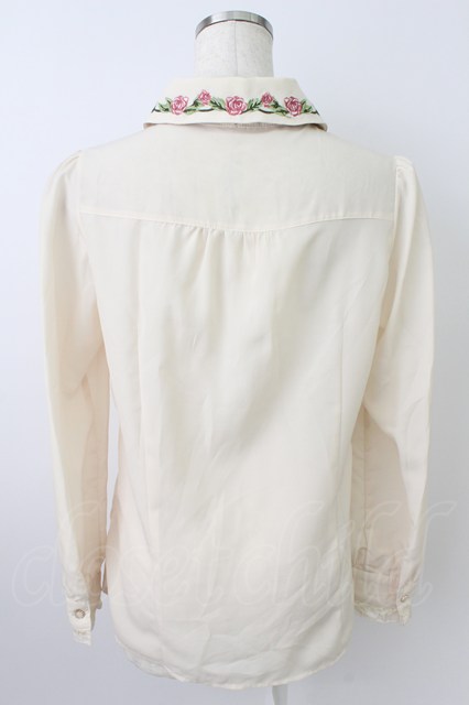 axes femme / お花刺繍フリルブラウス アイボリーXブラウン T-26-03-25-008-AX-BL-SA-ZT