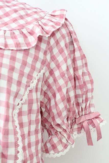 axes femme kawaii / ギンガムチェック半袖ブラウス M ピンク T-26-03-25-022-AX-BL-SA-ZT