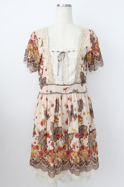 axes femme / 蝶&フラワープリントワンピース ベージュXブラウン T-26-03-25-033-AX-OP-SA-ZT