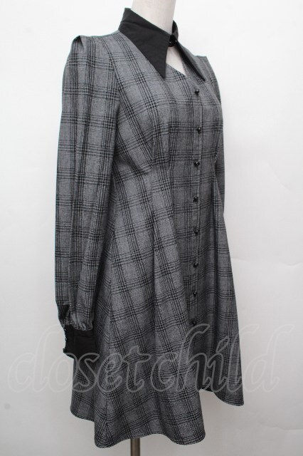 EAT ME / シャツカラーデコルテワンピース グレーx黒 S-26-03-23-039-LO-OP-AS-ZS