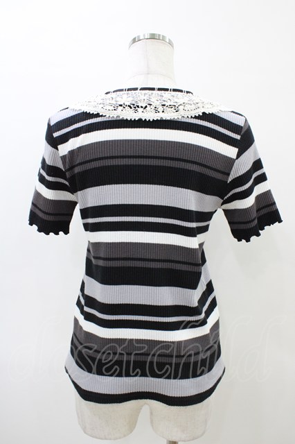 axes femme / レースカラーボーダートップス M ブラック H-26-03-28-060-AX-TO-YZ-ZH