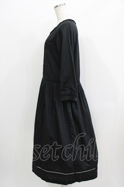 Jane Marple Dans Le Salon / エンブロイダリーピンタックワンピース ブラック H-26-03-27-008-JM-OP-KB-ZH