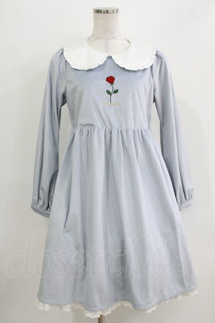 axes femme kawaii / ローズ刺繍ワンピース M サックス H-26-03-29-037-AX-OP-NS-ZH