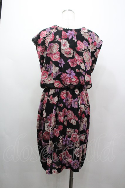 axes femme / ファーティペ付き花柄ワンピース 黒XピンクXパープル I-26-03-25-059-AX-OP-SA-ZI [戻る]