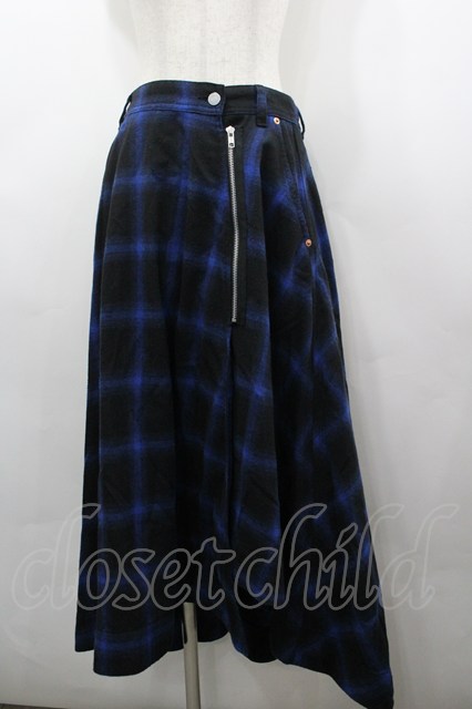 RNA / チェックサイドZIPロングスカート ブルー I-26-03-25-086-PU-SK-SA-ZI