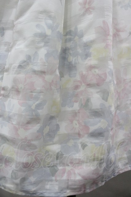 LODISPOTTO / フラワーチェック透かしプリント半袖ワンピース 白 I-26-03-25-051-LO-OP-SA-ZI