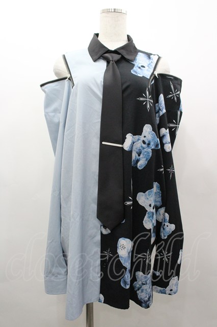 TRAVAS TOKYO / ベアプリントZIPシャツ サックスX黒 I-26-03-25-010-PU-BL-SA-ZI