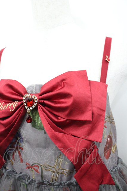 薄暑之毎 / チェリー総柄段フリルジャンパースカート S グレーX赤 I-26-03-25-043-LO-OP-SA-ZI