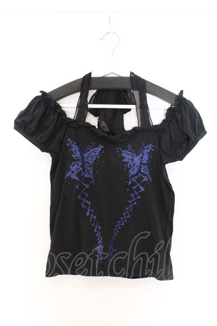 BPN / 蝶プリントパフカットソー M ブラック O-26-03-27-048-GO-TO-OW-OS