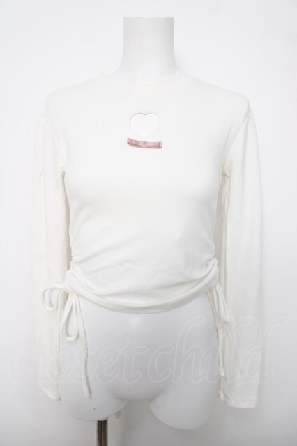 Bon24Hiz / ハートくり抜きギャザートップス M 白 Y-26-04-03-083-LO-TO-SZ-ZY