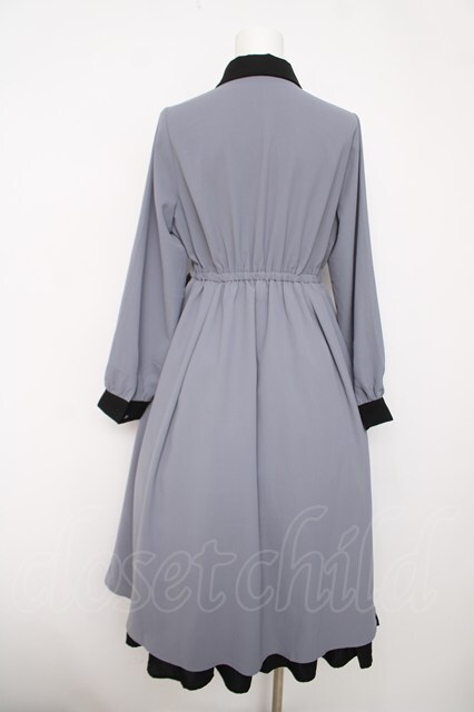 axes femme / 襟デザイン連釦バイカラーワンピース ブルーグレー Y-26-04-03-116-AX-OP-SZ-ZY [戻る]