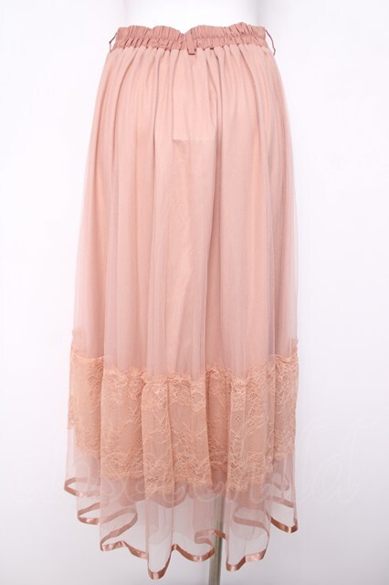 axes femme / レース×チュールスカート サーモンピンク Y-26-04-03-145-AX-SK-SZ-ZY
