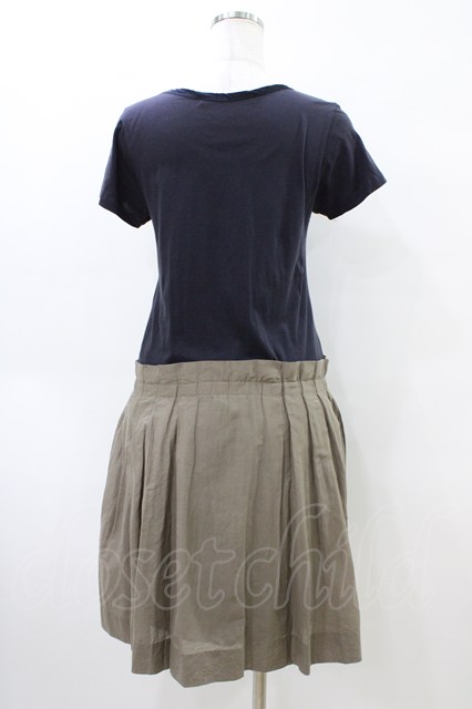 Jane Marple Dans Le Salon / レイヤード風切替ワンピース M ネイビー×カーキ H-26-04-02-1028-JM-OP-KB-ZH